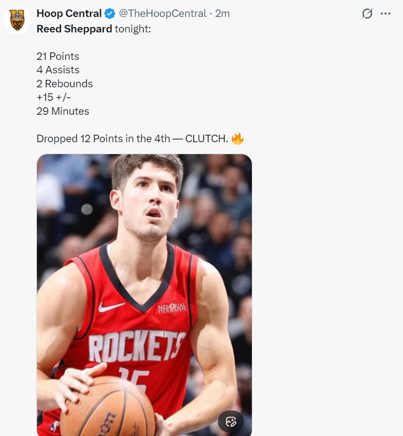 这场比赛火箭后卫里德-谢泼德登上了全美第三热搜,因为他这场比赛沉寂了三节后在末节最关键的时刻挺身而出,他单节12分帮助火箭逆转西部第二的马刺,火箭也拿到了三连胜。